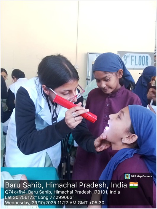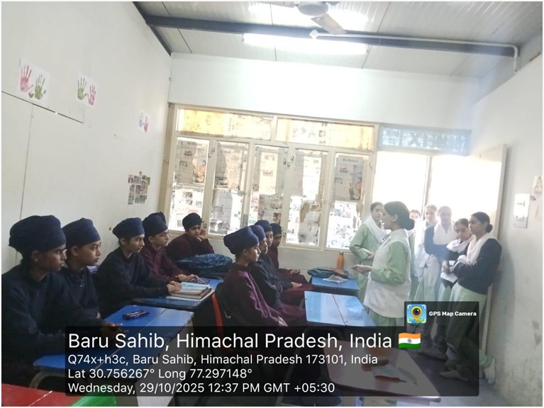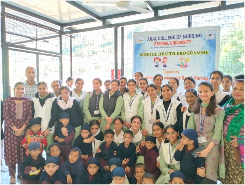 As part of the Community Health Nursing Services, B.Sc. Nursing 3rd-year students from Akal Charitable Hospital & Akal College of Nursing, Eternal University, conducted a School Health Program on 29th and 30th October 2025 at Model School, Baru Sahib. The activity aimed to assess the health and hygiene status of school children, evaluate the school environment, and promote health awareness through interactive educational sessions.
